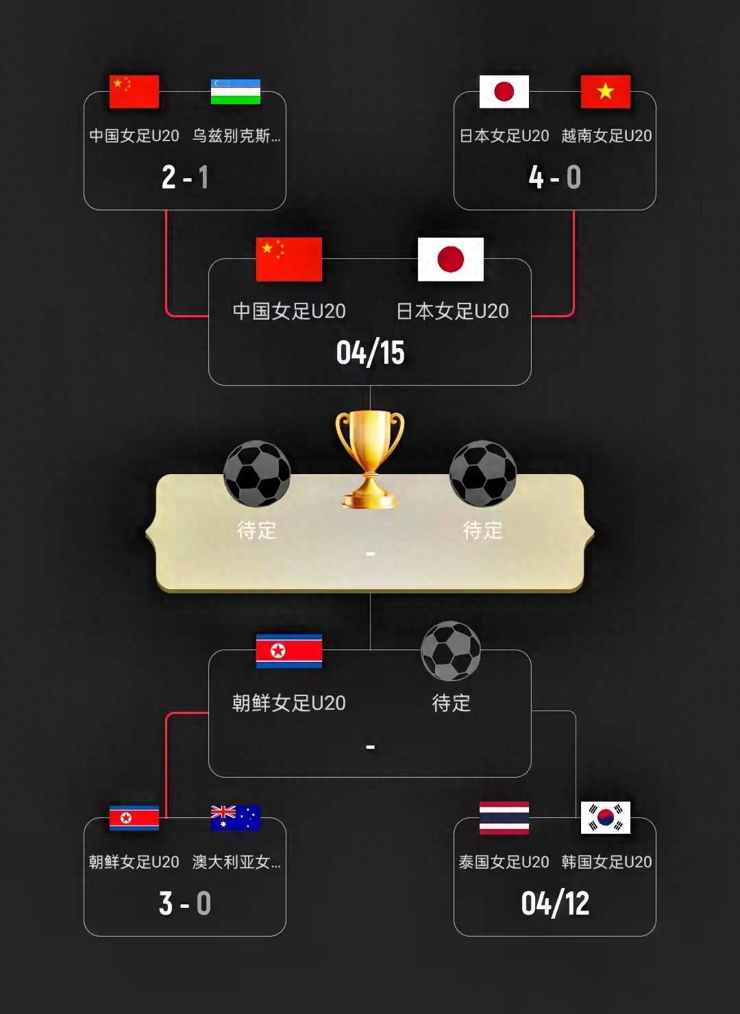 四强已定三席,而且这三支球队——日本、中国、朝鲜——都拿过U20女足亚洲杯的冠军.