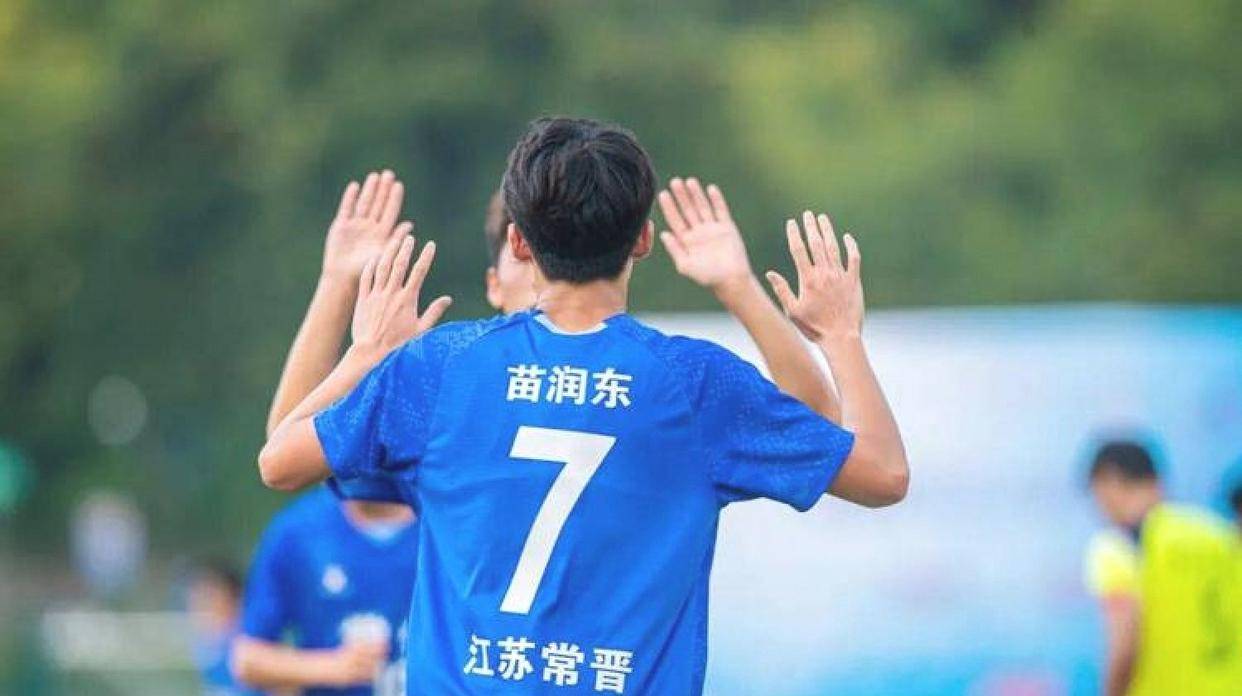 他们的成长轨迹也很有故事。苗润东起步较奇特,小时候学轮滑,拿过江苏省冠军,后来迷上足球,初一进去江苏省队。去年在苏超代表徐州队,那几次表现就已经显露出强大的突破和内切。