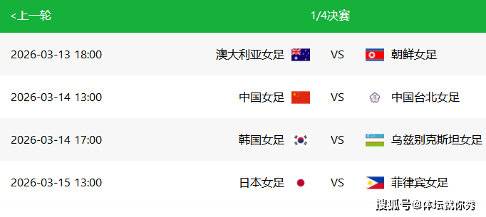 随着这2场比赛的结束,女足亚洲杯的1/4淘汰赛对阵也出来,中国女足作为B组的小组第一,将在1/4决赛中对阵中国台北女足,比赛地点也是在珀斯进行。