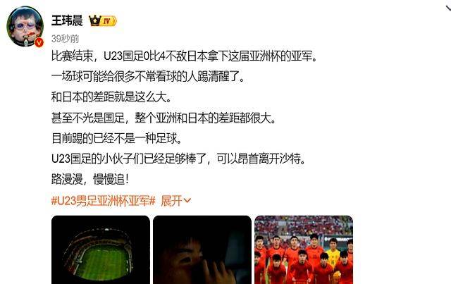 媒体人王玮晨则对国足的表现给予了肯定:“小伙子们已经很棒了,可以昂首离开沙特。”确实,能打进决赛本身就是一种成功,更何况还创造了历史。但他也直言不讳地表示,国足和日本队的差距确实不小,甚至可以说整个亚洲足球和日本都不在一个档次上。这话听着有点扎心,但事实就是如此,日本足球的体系、青训和比赛风格已经领先亚洲其他球队一大截。