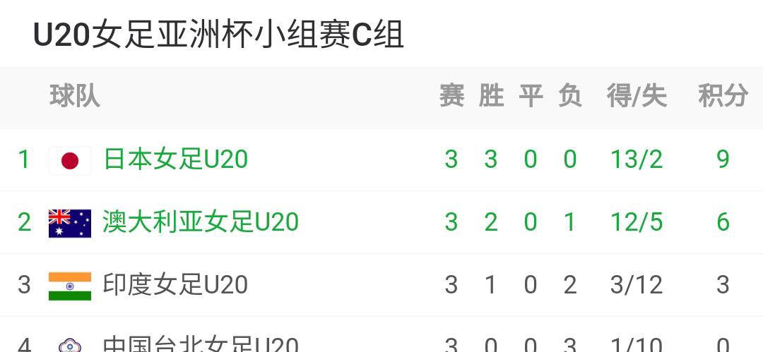 经过这几场激烈的较量,U20亚洲杯的小组赛最终积分也新鲜出炉。A组中,中国队以9分稳居首位,泰国队以6分紧随其后,而越南队则积累了3分,排名第三。在C组方面,日本队同样以9分夺得第一,澳大利亚队以6分排在第二,印度队则以3分排名第三。至于B组,朝鲜女足以9分摘得第一,韩国女足拿下6分位列第二,乌兹别克斯坦队以3分名列最后。